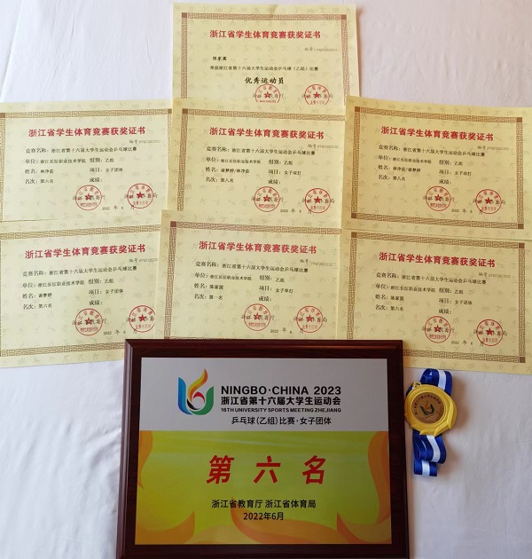 6月16日,历时4天的浙江省第十六届大学生运动会乒乓球(乙组)比赛在义乌工商职业技术学院顺利落幕,我校学子在基础部体育教研室教师郭海莲的带队下,获得1个冠军,1个第六名和1个第八名的好成绩。