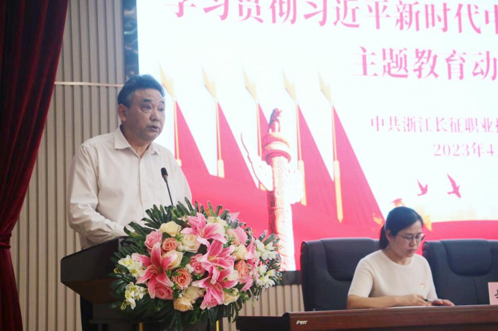 会上,学校党委书记、常务副院长王其军围绕主题教育的重大意义、目标任务和原则要求以及我校开展主题教育的落实举措等作了动员讲话。王其军指出,在全党深入开展学习贯彻习近平新时代中国特色社会主义思想主题教育,是党中央作出的重大决策,是贯彻落实党的二十大精神的重大举措。开展好学习贯彻习近平新时代中国特色社会主义思想主题教育是学校当前的一项重大政治任务。全校各级党组织要深刻认识主题教育的重大意义和要求,紧密结合实际,教育引导党员干部学思想、强党性、重实践、建新功,切实做到以学铸魂、以学增智、以学正风、以学促干,把主题教育成效转化为推动学校实现高质量跨越式发展的强大动力,奋力谱写特色鲜明的高水平高职院校建设新篇章,在全面推进浙江共同富裕示范省的新实践中展现职教担当、贡献长征力量,奋力迈出新步伐。