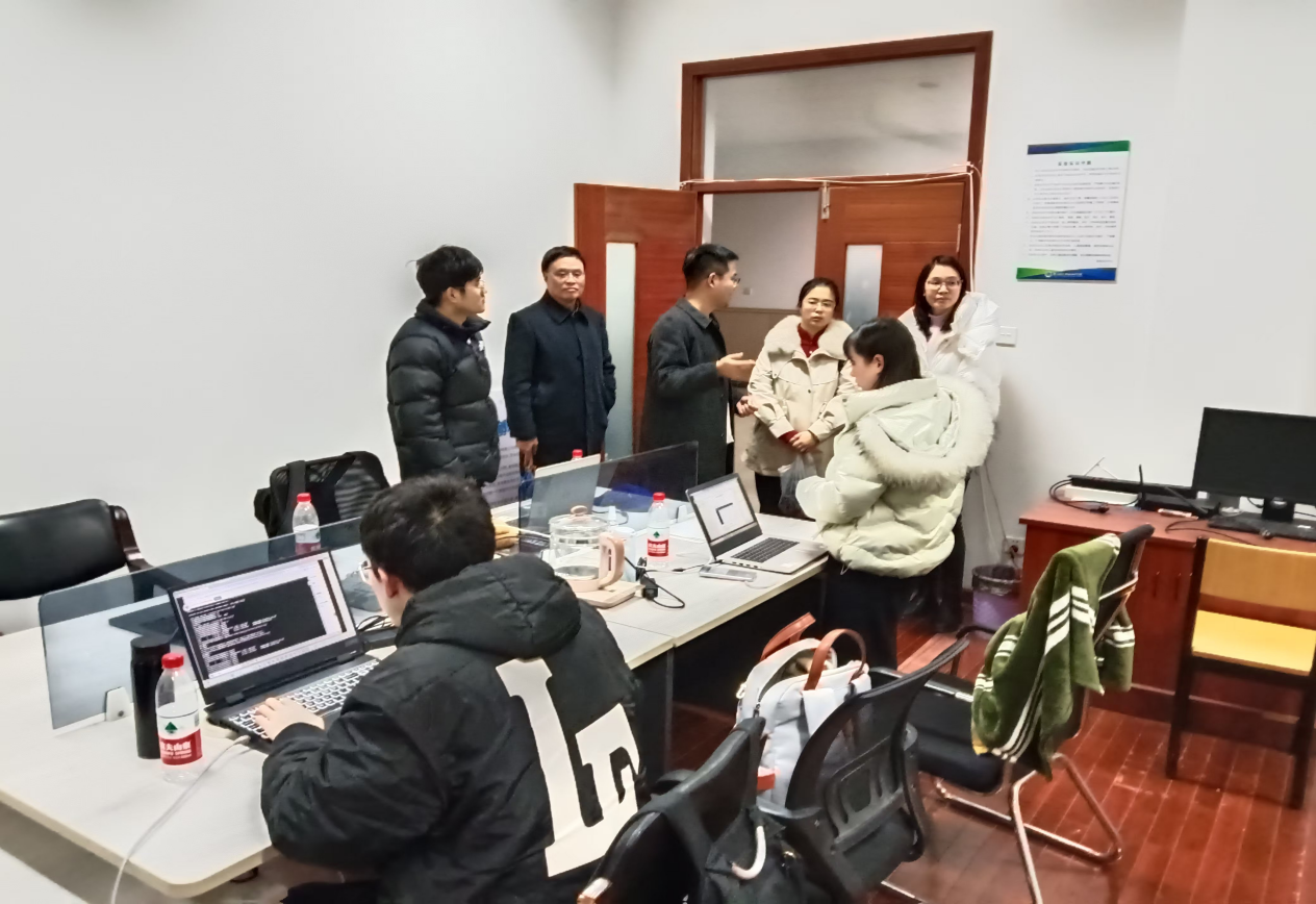 (参观计算机与信息学院智云数据安全大师工作室,企业导师介绍校企协同开展人才培养评价工作情况)