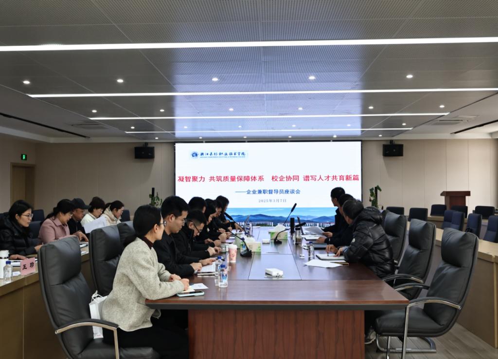 各二级学院相关负责人、教务处、督导室负责人参加了座谈会,并同企业兼职督导员进行了深入的交流研讨。