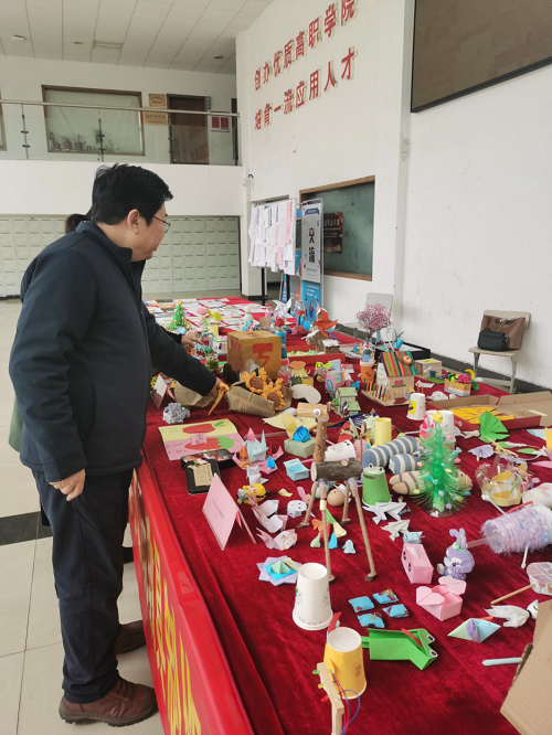 12月9日,我校应用语言系幼儿发展与健康管理专业在行政楼一楼大厅开展了“创意手工玩教具制作成果汇报展”,活动展出了19级和20级幼儿发展与健康管理专业八个班级的学生制作的共450件玩教具。