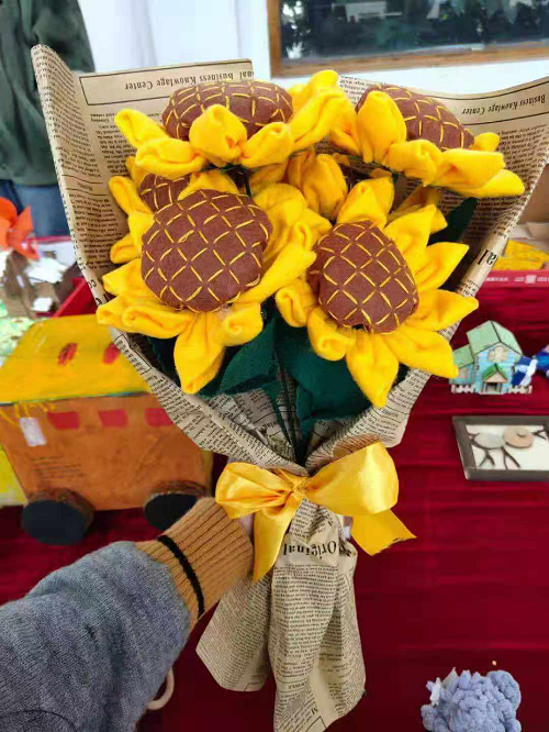 同学们结合《学前教育学》和《幼儿英语》课的相关内容,积极运用课堂所学知识,因材料制宜,发挥聪明才智,灵活利用彩色卡纸、海绵纸、布织布、废旧纸箱、瓶盖等材料,变废为宝,制作出了既漂亮美观又经济实用的各种玩教具,在体现动手制作能力、展示课堂学习成果的同时,也凸显了同学们可贵的创新精神和环保意识。